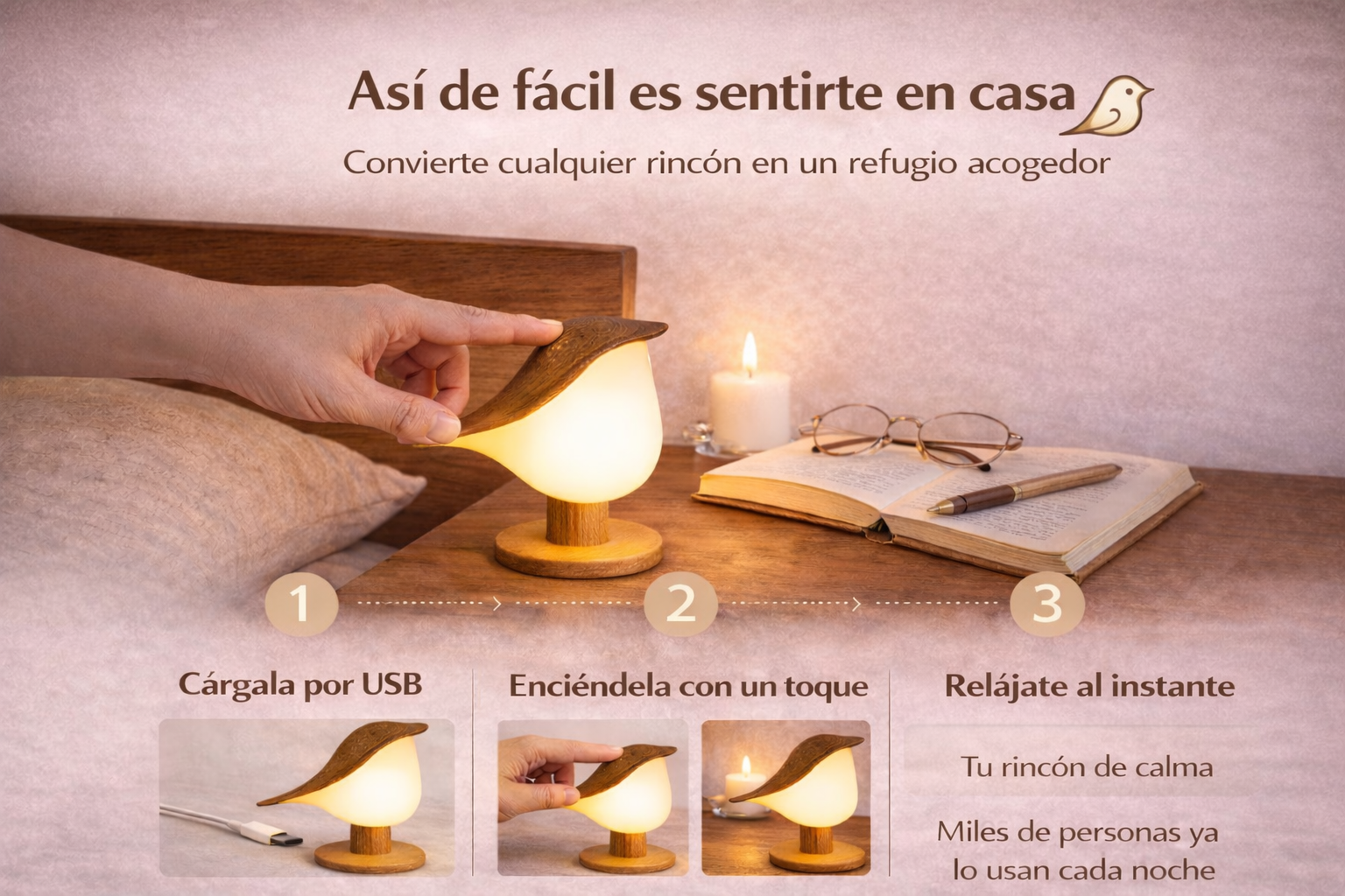 Diseñada para cuidar tu vista, su luz cálida y suave te permite leer de noche sin molestias ni cansancio en los ojos.